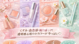 シミやくすみ、目の下のクマなど気になる部分には、コンシーラーを使って部分的にカバーします。指先やブラシで軽く叩き込むように馴染ませると、自然な仕上がりになります。